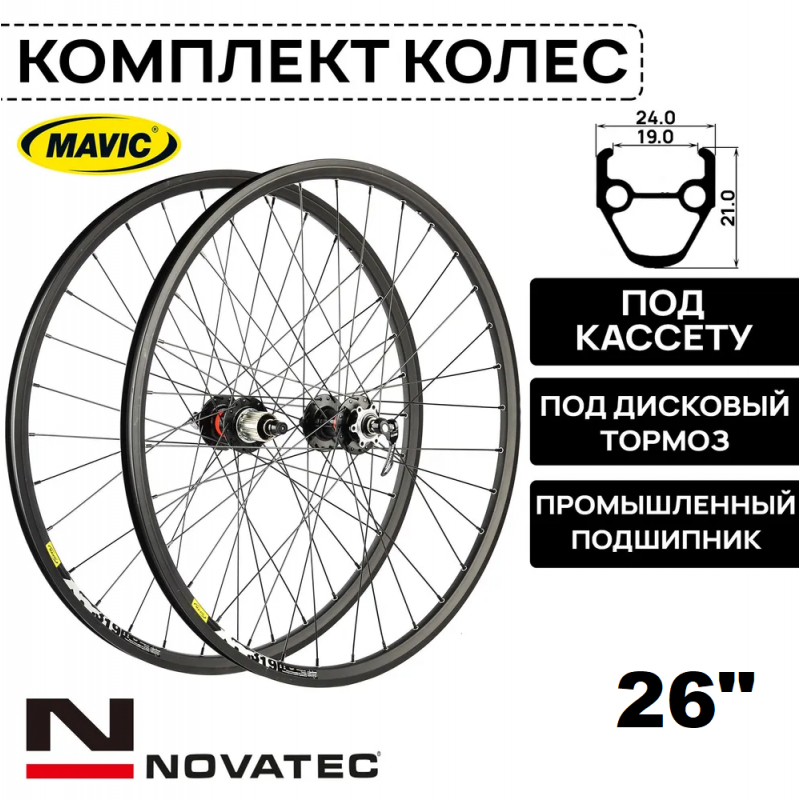 Двухстенные пистонированные обода MAVIC xm319 Disc с шириной 24мм предполагают установку резины шириной от 35 до 62 мм. Используются только с дисковыми тормозами. Втулки Novatec D041SB/D042SB оснащены парой/четырьмя промышленных подшипников, отличающихся хорошей пылезащитой и отличным накатом. Спицы - нержавейка. Цена за пару