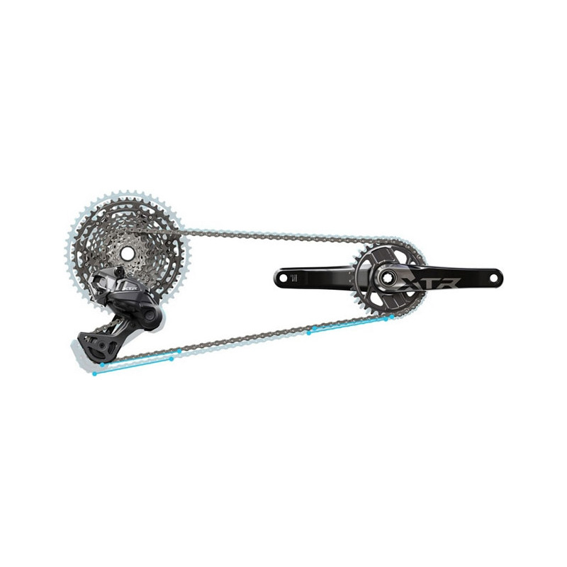 - Компактна трансмісія 9-45T: У поєднанні з меншими передніми зірками та заднім перемикачем XTR із середньою лапкою, касета XTR 9-45T забезпечує легкий варіант з великим кліренсом і безкомпромісним діапазоном 500%.