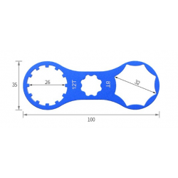 Ключ накидний для обслуговування вело вилок Suntour, 2в1, 8T та 12T Синій